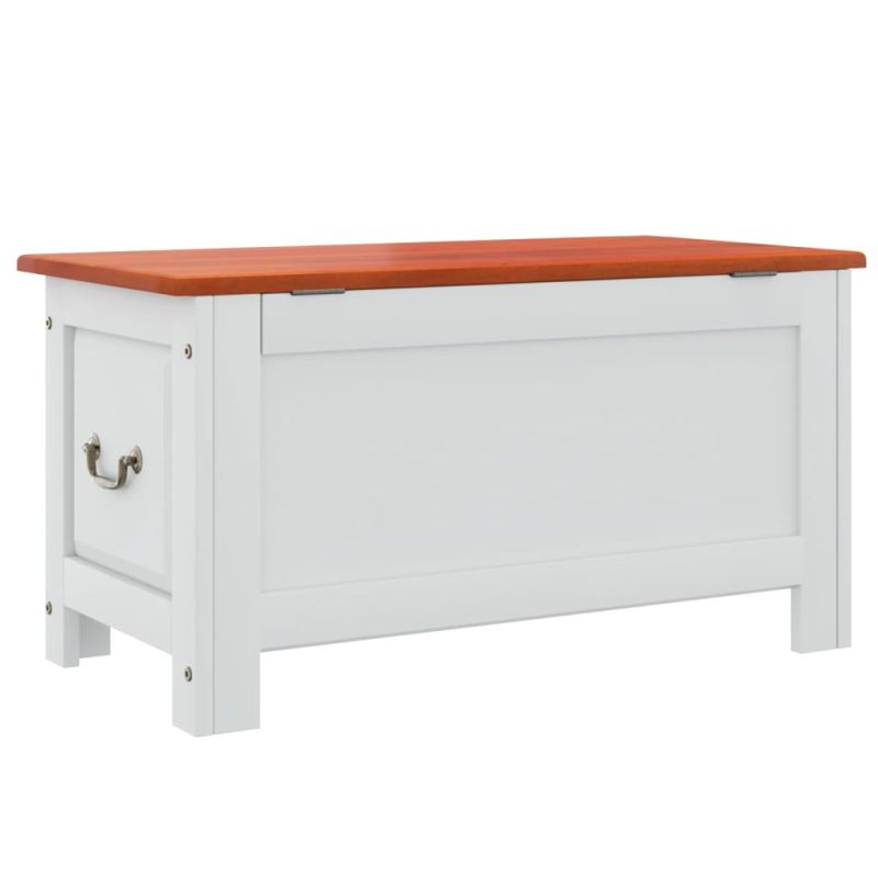 Сандък за съхранение с капак, кафяво и бяло, акациев масив