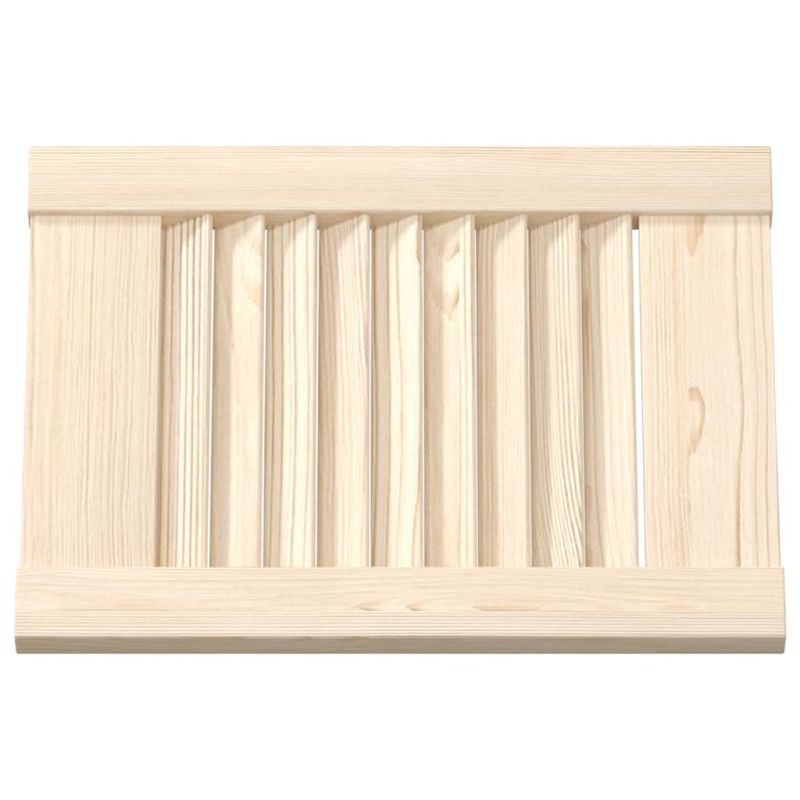 Тези дървени вратички за шкафове с жалузиен дизайн са идеален избор, независимо дали искате да поставите акцент или да подобрите въздушния поток. Масивно борово дърво: Тази врата за шкаф е изработена от масивно борово дърво за стабилност и издръжливост. Масивната борова дървесина е красив естествен материал. То е с продълговати шарки, а чеповете придават на материала характерния му рустик вид.Решетъчен дизайн: Дървената врата за шкаф има стилен решетъчен дизайн, който не само добавя елегантност и изтънченост към всяко пространство, но също така позволява на въздуха да влиза и излиза, предотвратявайки натрупването на пара и плесен вътре.Многофункционална: Решетъчната врата за шкаф е идеална за подмяна на вратата в мебели като кухненски шкафове, шкафове за баня, шкафове за обувки, гардероби, библиотеки и др. Можете също така да я използвате за декорация, облицовка или като радиаторни панели. Добре е да се знае:Пантите и аксесоарите за монтаж се продават отделно.