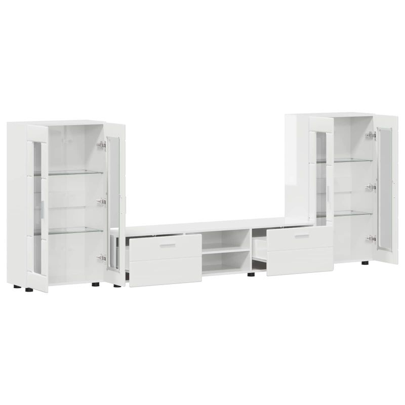 Комплект ТВ шкаф FLORIN 3 pcs Лъскаво бяло Инженерно дърво