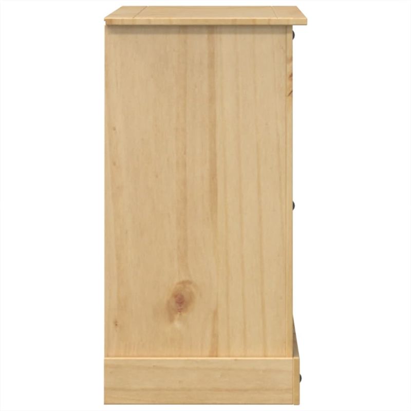Този дървен скрин с чекмеджета, отличаващ се с непреходен външен вид, е предназначен да бъде отлично допълнение към вашия дом. Масивна борова дървесина: Масивната борова дървесина е красив естествен материал. Боровата дървесина е с продълговати шарки, а чеповете придават на материала характерния му рустик вид. Изработен от масивна борова дървесина, скринът е издръжлив и здрав.Достатъчно пространство за съхранение: Шкафът за съхранение има 6 чекмеджета с различни размери, осигуряващи достатъчно място за вашите различни нужди за съхранение и поддържащи нещата ви организирани.Лесен за поддръжка: Сайдбордът се почиства лесно с влажна кърпа и изисква по-малко поддръжка.Метални дръжки: Шкафът с чекмеджета се предлага с метални пръстени дръжки, които правят чекмеджетата лесни за отваряне и затваряне, като същевременно добавят допълнителна красота. Внимание:За да предотвратите преобръщане, този продукт трябва да се използва с предоставеното устройство за закрепване на стена.