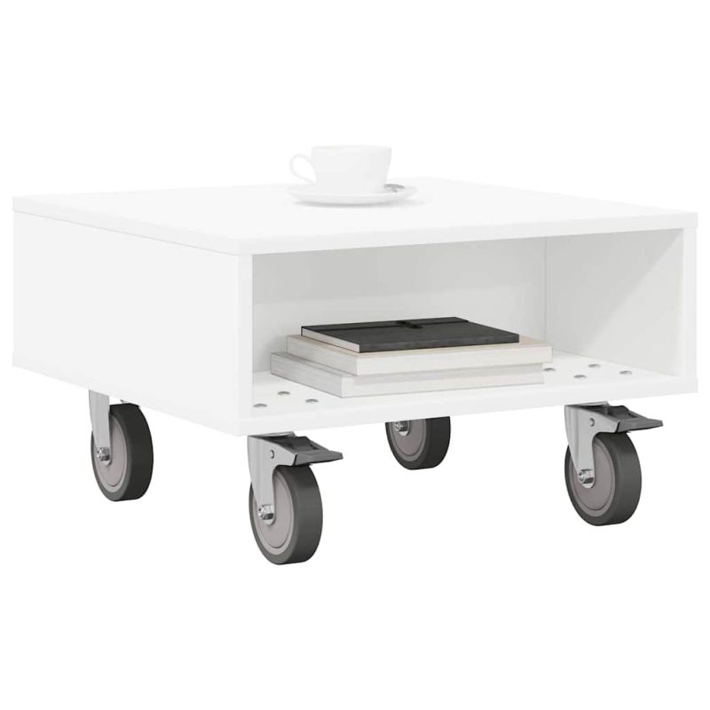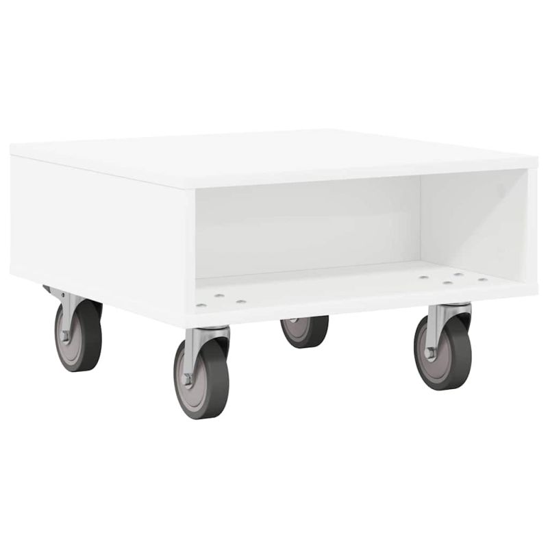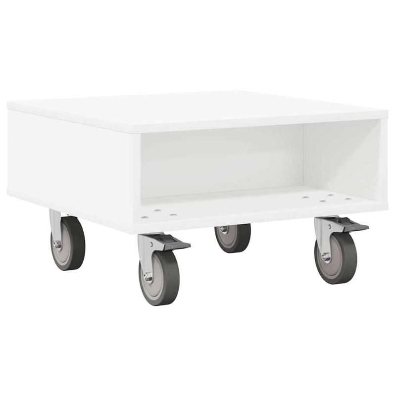 Странична маса с колела Бяло 50,5 x 50 x 30 см Инженерно дърво