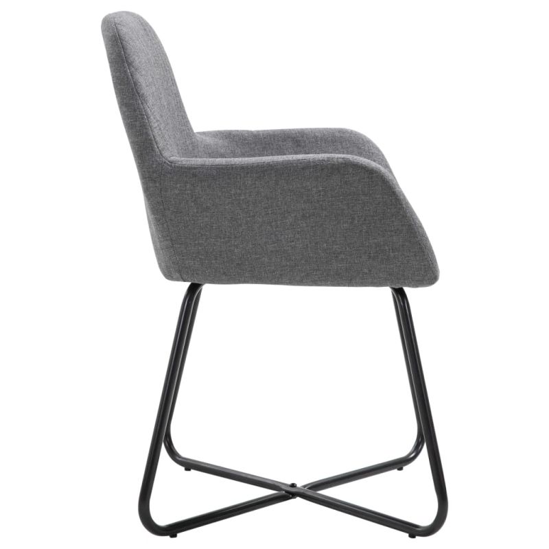 Добавете модерен щрих към вашата трапезария или хол с нашите комфортни и стабилни трапезни столове! Изработен от качествен текстил, този комплект от 4 трапезни стола е естетически и ергономично проектиран, за да внесе уютен акцент в дома ви. Той осигурява удобно място за вашето семейство да вечеря в трапезарията или да чете и да си почива в хола. Благодарение на меката седалка, подлакътници и облегалка, нашият стол със сигурност ще ви донесе оптимален комфорт при седене. Освен това прахово боядисаните стоманени крака също осигуряват супер стабилност и гарантират отлична издръжливост на стола. Доставката включва 4 трапезни стола. Максимално 110 кг на седалка. Съобразете се с риска от открит огън и други източници на силна топлина в близост до продукта.