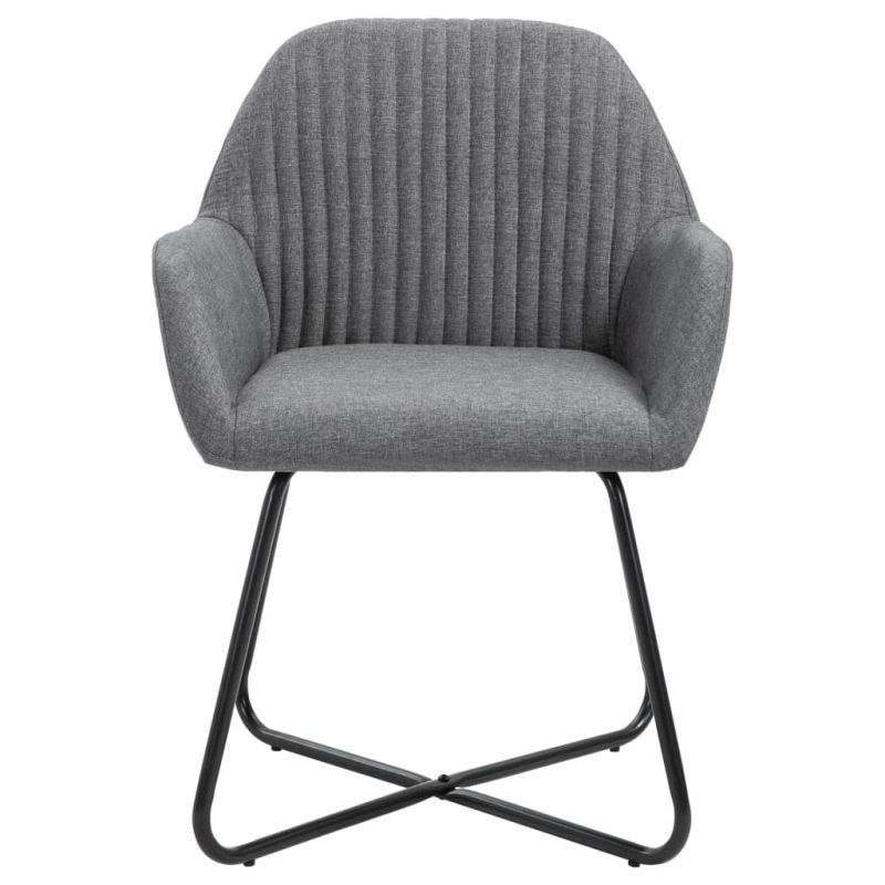 Добавете модерен щрих към вашата трапезария или хол с нашите удобни и стабилни трапезни столове! Изработен от качествен текстил, този комплект от 6 трапезни стола е естетически и ергономично проектиран, за да внесе уютен акцент в дома ви. Той осигурява удобно място за вашето семейство да вечеря в трапезарията или да чете и да си почива в хола. Благодарение на меката седалка, подлакътници и облегалка, нашият стол със сигурност ще ви донесе оптимален комфорт при седене. Освен това прахово боядисаните стоманени крака също осигуряват супер стабилност и гарантират отлична издръжливост на стола. Доставката включва 6 трапезни стола. Максимално 110 кг на седалка. Съобразете се с риска от открит огън и други източници на силна топлина в близост до продукта.