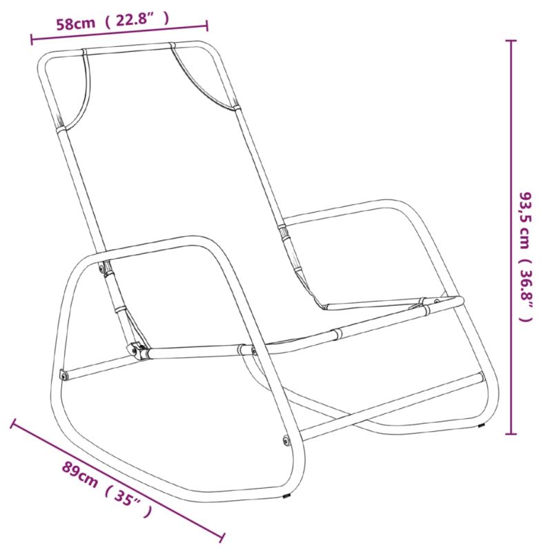 Поемете си глътка въздух в забързаното ежедневие на този удобен люлеещ се шезлонг! Този люлеещ се стол е отличен спътник за свободното време и почивка, за да се отпуснете и да се насладите. Качествена материя: Мрежестата повърхност textilene е дишаща, осигурявайки добра циркулация на въздуха и предотвратявайки натрупването на пот. Почиства се лесно с влажна кърпа.Люлеещи се крака: Отпуснете се, като седнете удобно, докато се наслаждавате на успокояващо и нежно люлеене.Здрава рамка: Люлката е изработена от прахово боядисана стомана, което я прави устойчива на ръжда и стабилна.Удобен дизайн: С удобно оформена повърхност за лежане, люлеещият се шезлонг предлага максимален комфорт, когато се люлеете напред-назад. Забележка:Забележка: За да удължите живота на вашите градински мебели, ви препоръчваме да ги защитите с водоустойчиво покритие.