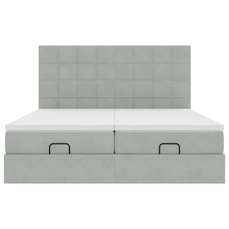 Османска легло с матраци и LED, светлосиво, 200x200 см, кадифе