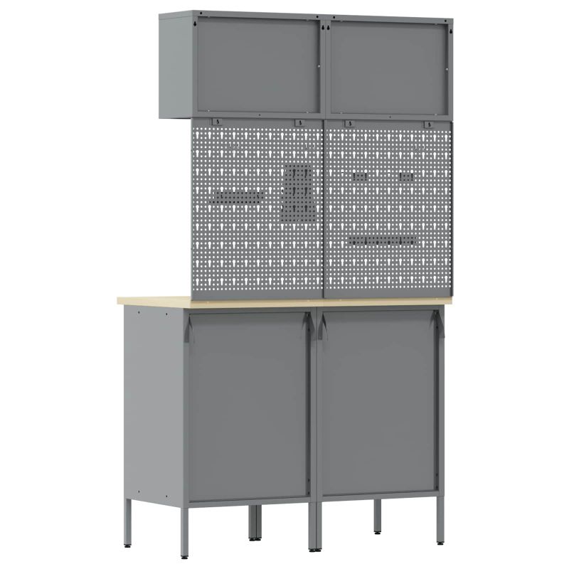 Този здрав комплект работни шкафове е идеалната комбинация от полезност и изглед, с модерен правоъгълен дизайн. Той е подходящ за всеки, който цени естетиката и реда. Шкафът е лесен за използване и предлага много възможности за съхранение на инструменти - поддържа всичко чисто и подредено! Материали: Стоманата и инженерната дървесина предлагат здрава и дълготрайна конструкция. Стоманата осигурява защита, докато дървото добавя стил. Включени компоненти: Ръчно регулируемите крачета позволяват корекция в зависимост от височината, улесняваща работата. Дизайн: Правоъгълната форма е идеално решение за управление на пространството с минималистичен вид. Препоръчителни употреби: Подходящи за всякакви работилници, тези шкафове предлагат удобство при организирането на инструменти и аксесоари. Грижа и поддръжка: Лесно сглобяване с необходима отвертка; следвайте указанията на производителя за дълготрайност.