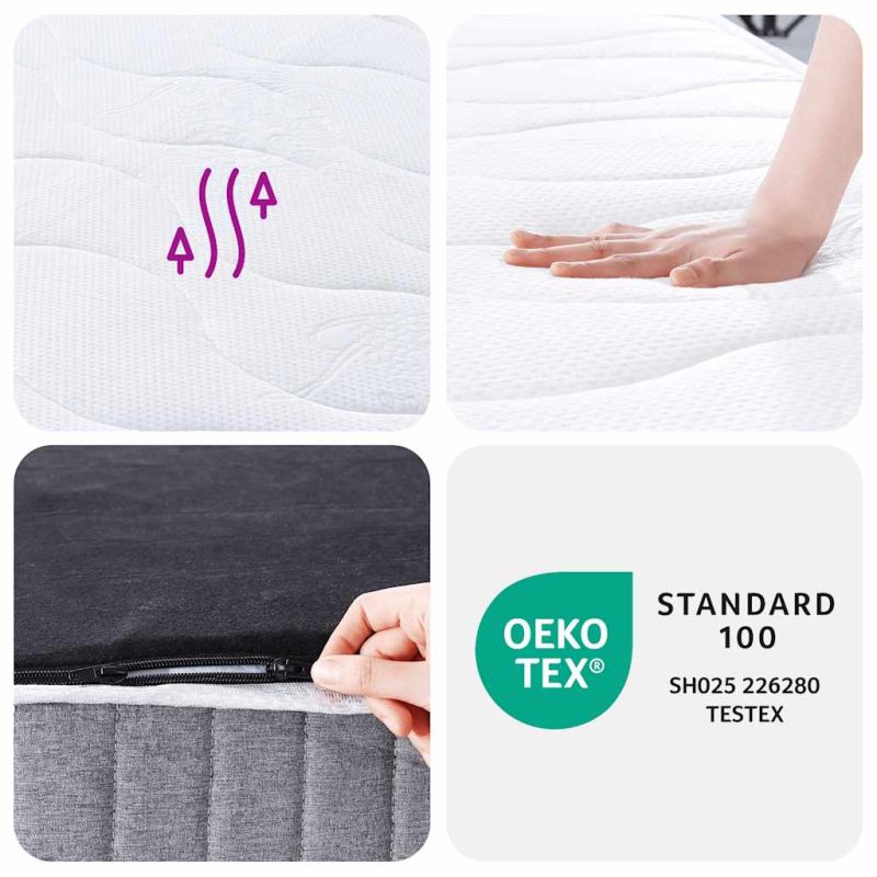 Този матрак с покет пружини е проектиран да ви осигури приятно усещане и комфортен сън у дома. Издръжливост и дълготрайност: Материята се отличава със семпъл и изчистен вид, като същевременно остава дишаща, удобна за кожата и дълготрайна. Индивидуална опора: Всяка спирална пружина, обвита в плат, реагира на вашите точки на натиск, осигурявайки целенасочена опора и равномерно разпределяйки натиска, който гръбнакът ви издържа.Подобрен комфорт: Пружинният матрак е проектиран с множество слоеве, включително слой от пяна, слой изолираща подложка и слой пружина. Тази комбинация осигурява меко до средно меко усещане и люлеещ комфорт за всички позиции за сън. Освен това матракът ефективно абсорбира шума и вибрациите, причинени от мятане и въртене, осигурявайки спокоен и необезпокояван сън. Лесна поддръжка: Пружинният матрак с пяна има дълъг цип, който улеснява свалянето на калъфа за почистване. Добре е да се знае:Калъфът на матрака може да се пере до 40 °C. Моля, не го перете твърде често. За ваше удобство матракът е компресиран и навит в кутия, като лесно можете да го местите и поставяте във вашата стая.