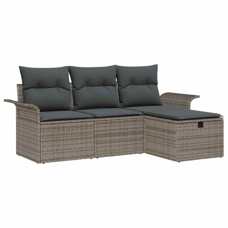 Градински Софа Комплект с възглавница 4 pcs Сив полиратан