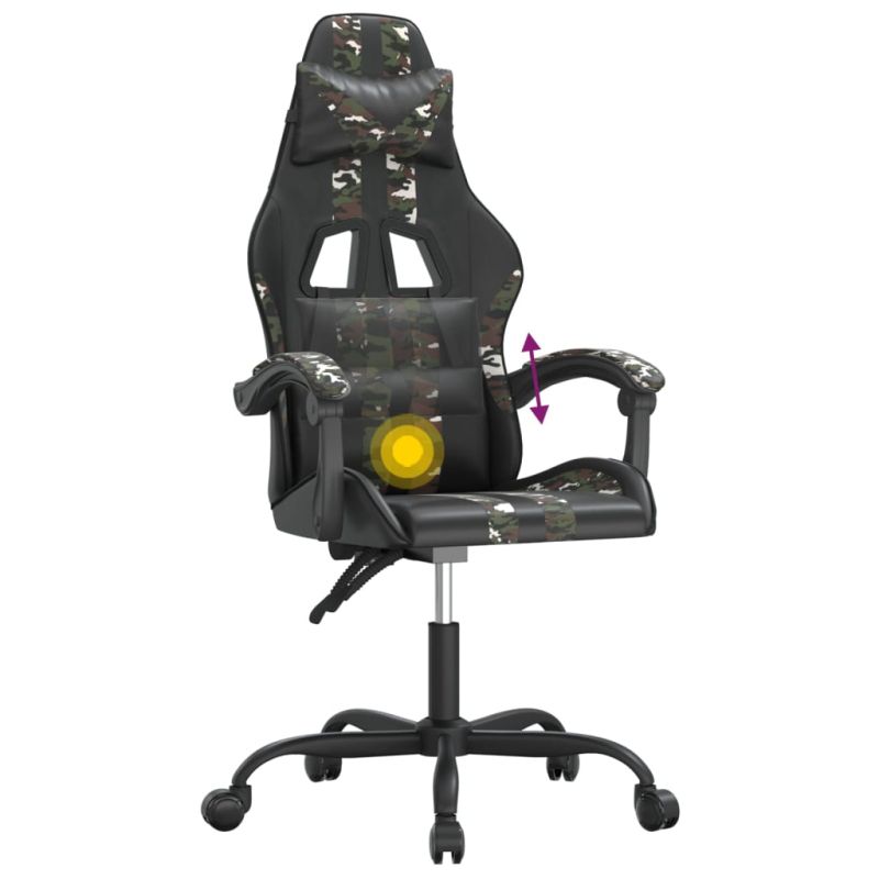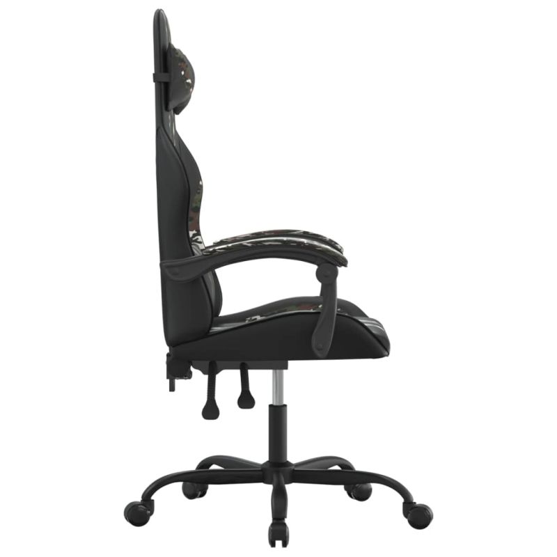 Въртящ гейминг стол, черно и камуфлаж, изкуствена кожа
