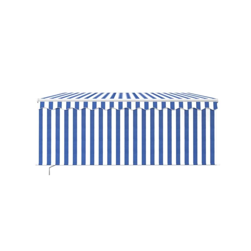 Ръчно прибиращ се сенник с щора, 3,5x2,5 м, синьо и бяло