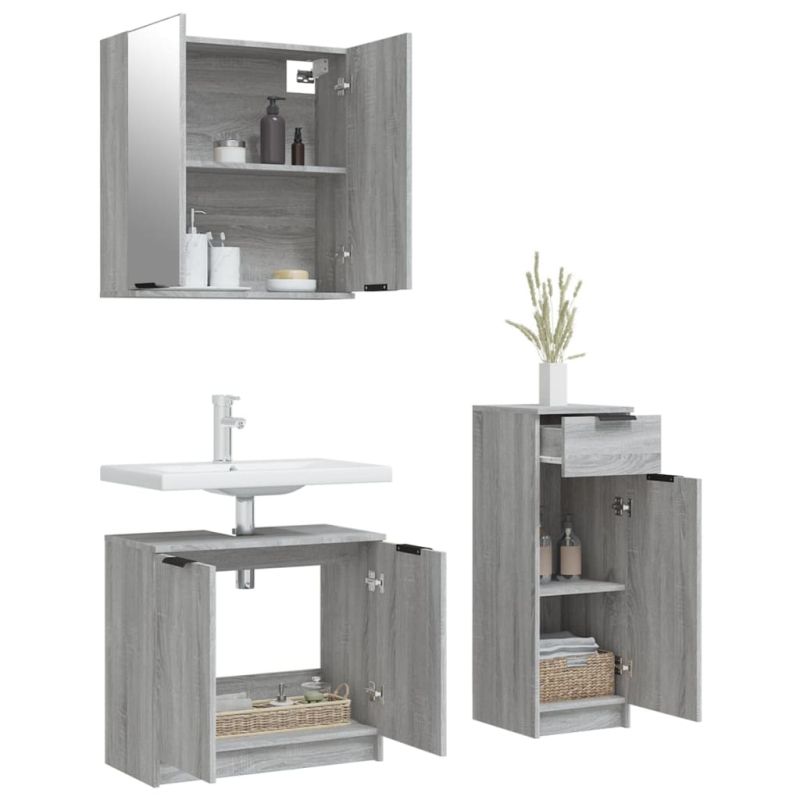 Комплект шкафове за баня от 3 части инженерно дърво Сив сонома