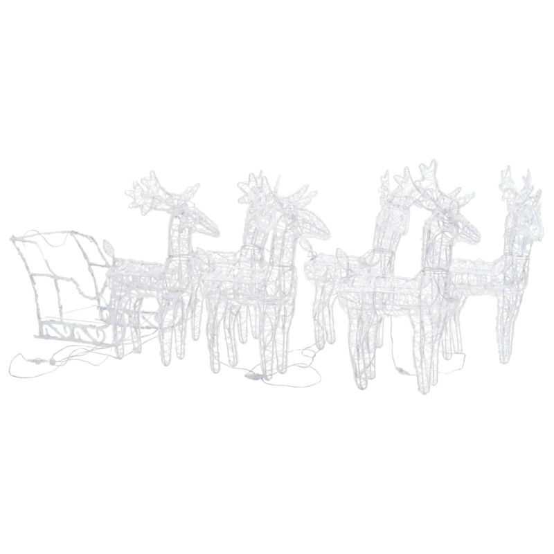 Създайте красива украса в двора си този празничен сезон с тези очарователни светещи коледни елени с шейна. Устойчив на атмосферни влияния материал: Изработени от акрил и PVC около стоманена рамка, тези светещи елени с шейна са напълно устойчиви на атмосферни влияния през празничния сезон.Светеща празнична украса: Предварително осветена с 240 LED лампи, които са енергийно ефективни и дълготрайни.Различни светлинни ефекти: Коледната декорация е проектирана с 8 различни светлинни ефекта: комбинация от всички ефекти, бавно светване, блещукане/светкавица, вълни, редуване/течаща вода, последователно, постоянно включено и бавно избледняване. Забележка: Ако използвате продукта на открито, моля, уверете се, че USB връзката е включена на закрито в суха среда.Продуктът има USB конектор, но не е включен сертифициран източник на захранване от 5V USB