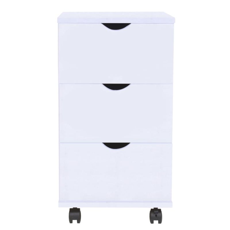Нашият модерен и стилен шкаф с чекмеджета ще бъде страхотно допълнение към вашия работен кабинет, офис или друг декор в хола. Шкафът се състои от рамка от инженерно дърво с пластмасови колелца и е стабилен и издръжлив. 3-те чекмеджета осигуряват достатъчно място за съхранение на различни предмети, спретнато организирани и достъпни. Колелцата позволяват на шкафа да се движи лесно и удобно. Този продукт е с лесен монтаж.