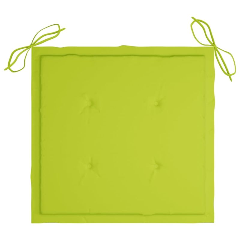Добавете допълнителен комфорт във вашето пространство на открито с този комплект дървени градински столове. Той е идеален за разговори със семейството и приятелите или просто да се наслаждавате на успокояващите слънчеви бани! Този комплект градински столове е изработен от масивна акациева дървесина с маслено покритие, която представлява твърда дървесина с плътни шарки. Грубата акациева дървесина има силата да издържи на тежестта, а също и на износване във времето. Този дървен комплект столове е стабилен, издръжлив и устойчив на атмосферни влияния. Освен това повърхността с маслено покритие прави столовете лесни за почистване с влажна кърпа. Нещо повече, включените в комплекта възглавници осигуряват допълнителен комфорт. Забележка: За да удължите живота на вашите градински мебели, ви препоръчваме да ги защитите с водоустойчиво покритие. Максимално 110 кг на седалка.