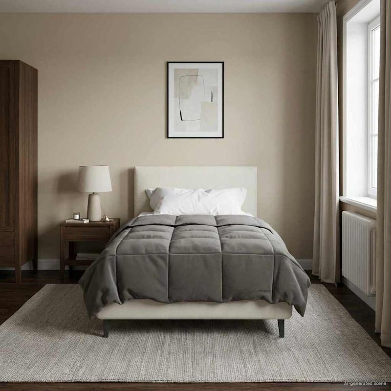 Този модерен летен декор носи свежест с елегантния си дизайн и удобството, което предлага. Направен е основно от мек микрофибър, който комбинира стил и съвременна естетика, идеален за всяка спалня. Лекото му тегло и плюшеният кадифен слой от едната страна предлагат приятно усещане, особено през летните нощи. Проектиран да подобри вашата спална среда, този декор създава успокояваща атмосфера, трансформирайки спалнята ви в комфортно убежище. Качествени материали: Направен от 100% полиестерен микрофибър, декорът е изключително мек и комфортен. Устойчивостта му на гънки поддържа свежия му вид дори след дълга употреба, а вторичният кадифен слой добавя допълнителен комфорт, който не се среща често в подобни продукти. Квадратен дизайн: Квадратният шев подсилва формата на декора и осигурява текстурирана визуална привлекателност, който улавя съвременния стил с геометричния си мотив, добавяйки елегантност към спалнята. Повишава и издръжливостта на декора, обещавайки години комфорт. Удобство при употреба: Двустранният дизайн позволява избор между гладкия микрофибър и пухкавия кадифен слой, удовлетворявайки различните ви нужди за комфорт. Материалът диша, осигурявайки ви прохладен сън през летните месеци. Лесна поддръжка: Може да се пере в машина и да се суши, което улеснява грижата за него. Препоръчителната грижа включва пране в студена вода и сушене на ниска температура, което спестява усилия и дава повече удоволствие. За бързо възстановяване на пухкавостта, добавете тенис топка в сушилнята. OEKO-TEX стандарт 100: Материалите, използвани в декора, имат сертификат по тази независима система за тестване и сертификация.