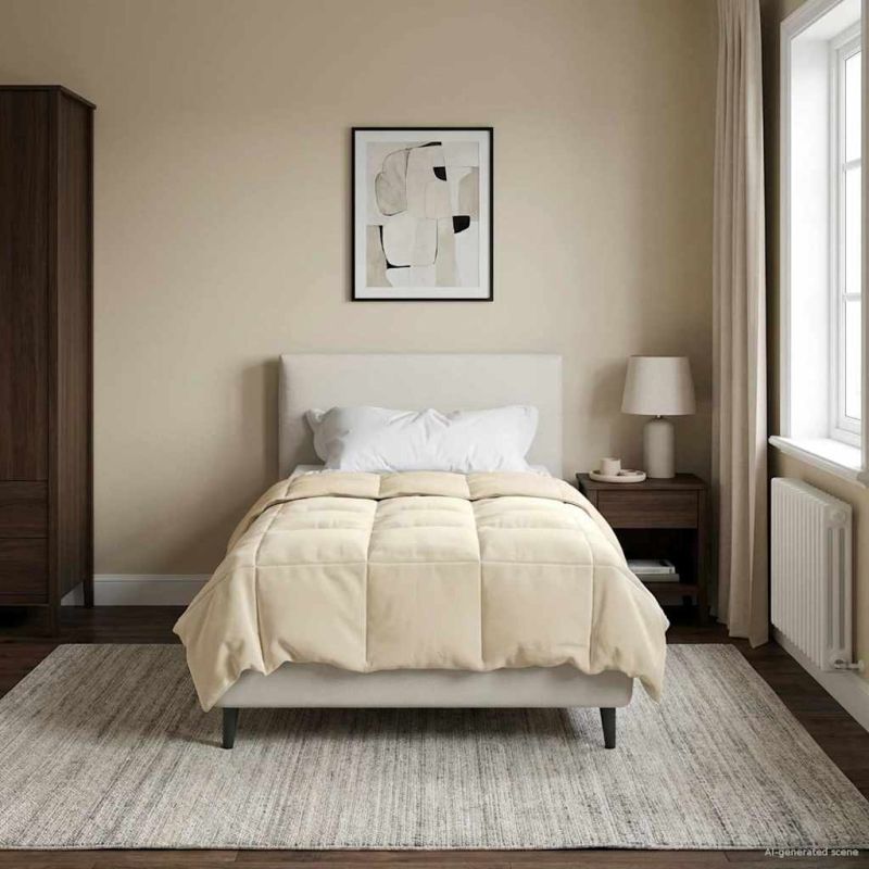 Това дюше е проектирано да превръща спалнята Ви в уютен оазис през цялата година. С модерен вид, чисти линии и удобство, то се комбинира с всеки декор и Ви осигурява максимален комфорт. Независимо дали е студена зима или топло лято, неговият универсален килт патерн е идеалният избор за добър сън. Материал от микрофибър: Дюшето е направено от 100% полиестер, защото е супер меко и устойчиво на гъбички. Създава приятно усещане върху кожата, осигурявайки Ви пълен комфорд всяка нощ. Универсално пълнеще: С иновационно влакно, дюше с неговото стегнато и дишащо пълнеже е идеално за всички сезони. Запазва топлината през зимата и Ви охлажда летните нощи. Килт дизайн: Красивият килт патерн добавя стил и текстура на спалнята. Неговото равномерно разпределение на пълнежа го прави удобно и лесно за маневриране. Дизайн с двустранен плат: Едната страна е мека като кадифе, супер уютна за зимата, а другата е гладка и дишаща, така че да е свежо и в горещите дни. Лесна поддръжка: Може да се пере в машината на студено с подобни цветове. За простота, сушете на ниска температура с тенис топка или просто го разклатете на слънце. Като цяло, дюшето остава свежо без усилия.