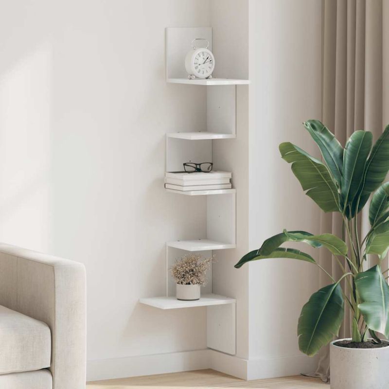 Стенен ъглов рафт, бял, 32x32x127,5 см, ПДЧ