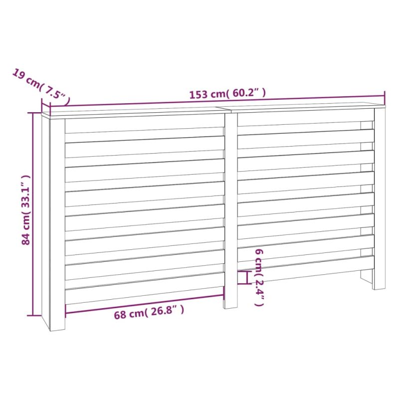 Параван за радиатор 153x19x84 см борово дърво масив