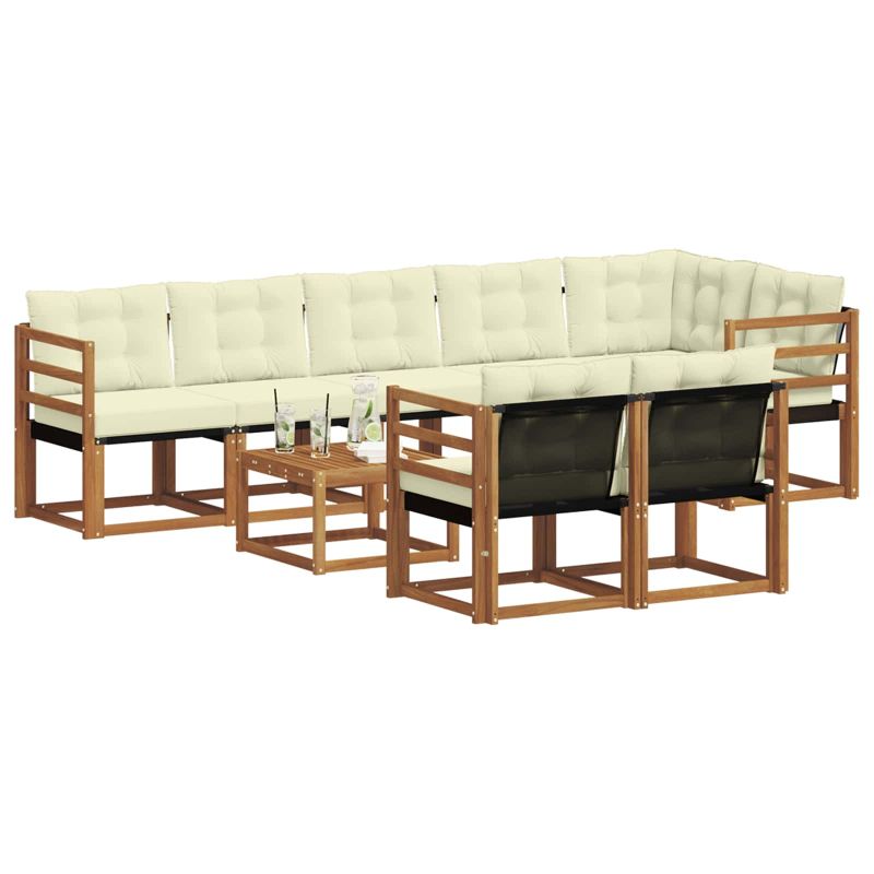 Комплект дивани за открито 9 pcs Натурален и Крема