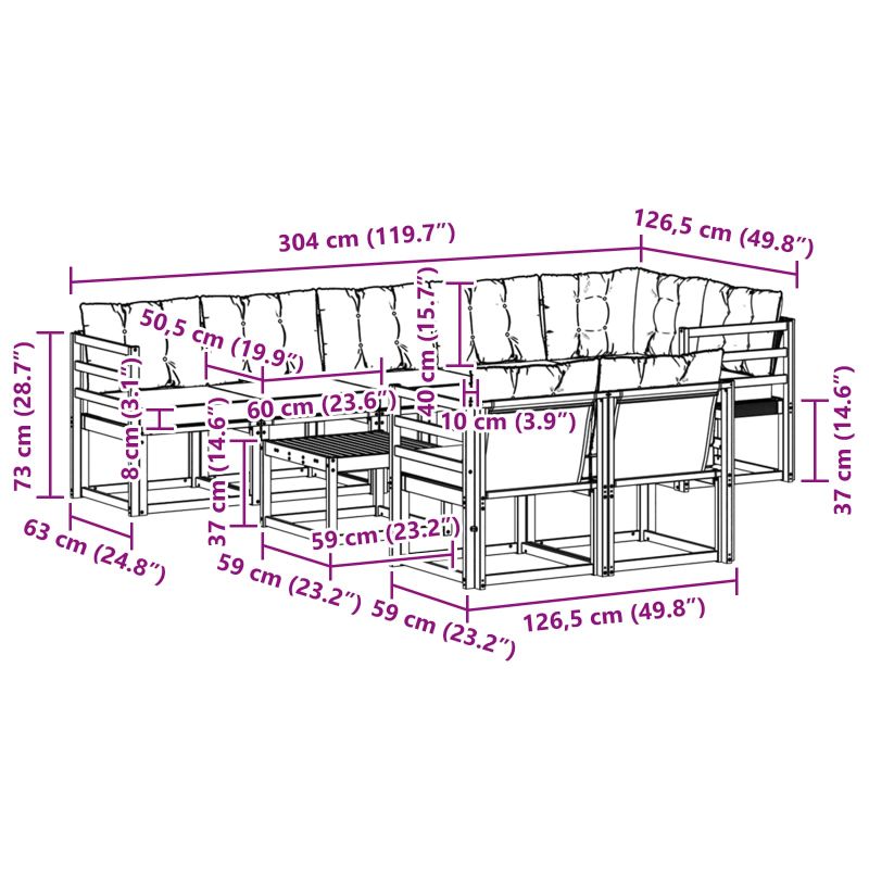 • 9 x задна възглавница: 60 x 40 x 10 см (ДхШхВ)