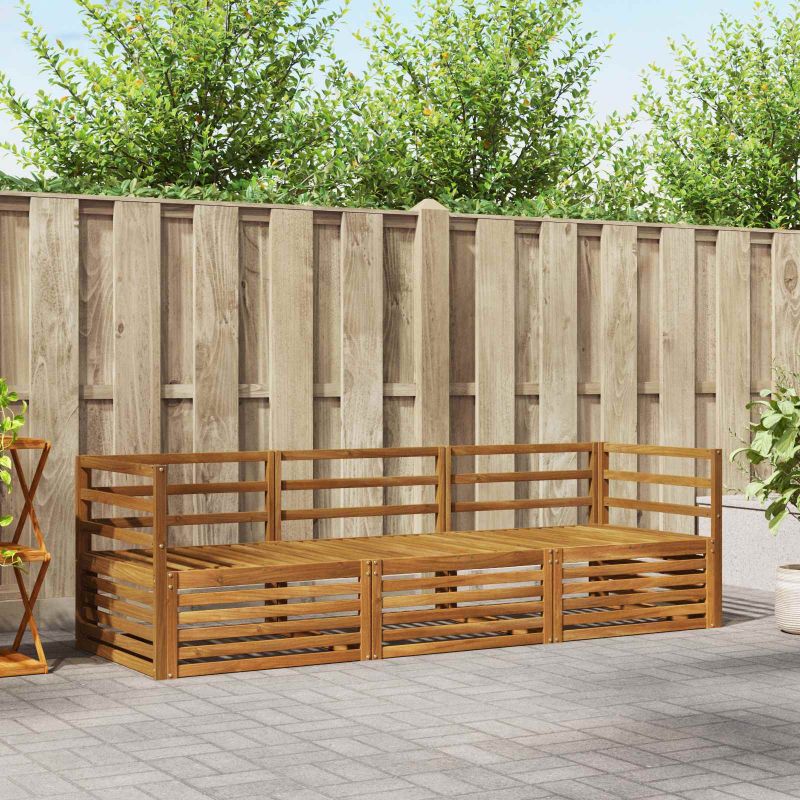 Този комплект за открито съчетава стил и практичност, създавайки акцент в градината или на терасата. Със своите чисти линии и минималистичен дизайн, той придава елегантност и е идеален за забавления на открито. Изработен е изцяло от масивна акациева дървесина, която му осигурява дълготрайност и визуално привлекателен вид. Издръжлива рамка от масивна акациева дървесина: Този комплект е известен със своята здравина и устойчивост на навън. Силната конструкция ти осигурява надеждна опора и дълготрайност, а топлият натурален цвят добавя уют в градината или на терасата. Устойчив на времето дизайн: Комплектът има лаково покритие, което го защитава от слънце и леки дъждове. Полираният завършек спомага за запазване на визията и функционалността, осигурявайки дълъг срок на експлоатация за твоята градина, тераса или двор. Компоненти и дизайн: Всеки елемент, от облегалките до седалките, е създаден за стил и комфорт. Поддържащите функции осигуряват допълнителен уют, а концепцията за дизайна е визуално привлекателна за различни събития на открито. Комфорт и многофункционалност: Модулният дизайн дава възможност за адаптация и разнообразие. Перфектен е за релаксация, събирания или тихи моменти на четене – комплектът безпроблемно се приспособява към всяка открита среда, като максимизира комфорта. Лесна поддръжка: Поддържането му е просто: просто минавай с влажна кърпа и избягвай остри средства. Редовната грижа помага да запазиш вида му и да удължиш живота му.