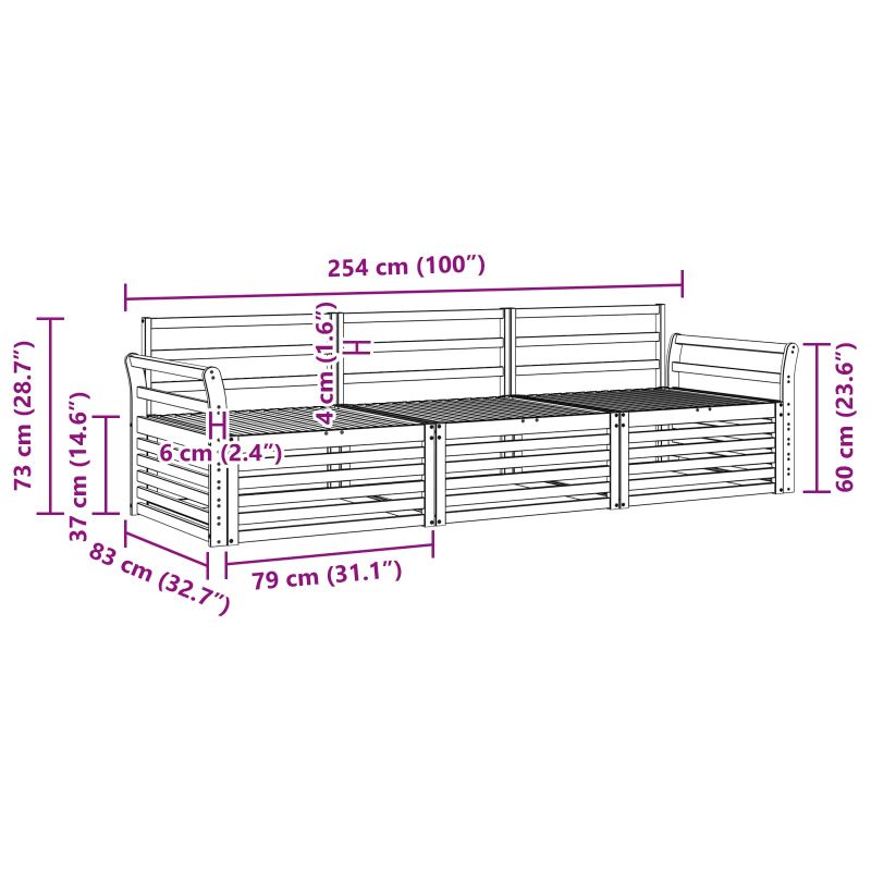 Този комплект за открито съчетава стил и практичност, създавайки акцент в градината или на терасата. Със своите чисти линии и минималистичен дизайн, той придава елегантност и е идеален за забавления на открито. Изработен е изцяло от масивна акациева дървесина, която му осигурява дълготрайност и визуално привлекателен вид. Издръжлива рамка от масивна акациева дървесина: Този комплект е известен със своята здравина и устойчивост на навън. Силната конструкция ти осигурява надеждна опора и дълготрайност, а топлият натурален цвят добавя уют в градината или на терасата. Устойчив на времето дизайн: Комплектът има лаково покритие, което го защитава от слънце и леки дъждове. Полираният завършек спомага за запазване на визията и функционалността, осигурявайки дълъг срок на експлоатация за твоята градина, тераса или двор. Компоненти и дизайн: Всеки елемент, от облегалките до седалките, е създаден за стил и комфорт. Поддържащите функции осигуряват допълнителен уют, а концепцията за дизайна е визуално привлекателна за различни събития на открито. Комфорт и многофункционалност: Модулният дизайн дава възможност за адаптация и разнообразие. Перфектен е за релаксация, събирания или тихи моменти на четене – комплектът безпроблемно се приспособява към всяка открита среда, като максимизира комфорта. Лесна поддръжка: Поддържането му е просто: просто минавай с влажна кърпа и избягвай остри средства. Редовната грижа помага да запазиш вида му и да удължиш живота му.