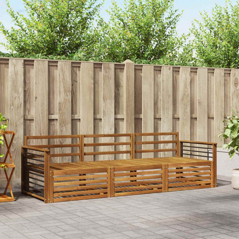 Този комплект за открито съчетава стил и практичност, създавайки акцент в градината или на терасата. Със своите чисти линии и минималистичен дизайн, той придава елегантност и е идеален за забавления на открито. Изработен е изцяло от масивна акациева дървесина, която му осигурява дълготрайност и визуално привлекателен вид. Издръжлива рамка от масивна акациева дървесина: Този комплект е известен със своята здравина и устойчивост на навън. Силната конструкция ти осигурява надеждна опора и дълготрайност, а топлият натурален цвят добавя уют в градината или на терасата. Устойчив на времето дизайн: Комплектът има лаково покритие, което го защитава от слънце и леки дъждове. Полираният завършек спомага за запазване на визията и функционалността, осигурявайки дълъг срок на експлоатация за твоята градина, тераса или двор. Компоненти и дизайн: Всеки елемент, от облегалките до седалките, е създаден за стил и комфорт. Поддържащите функции осигуряват допълнителен уют, а концепцията за дизайна е визуално привлекателна за различни събития на открито. Комфорт и многофункционалност: Модулният дизайн дава възможност за адаптация и разнообразие. Перфектен е за релаксация, събирания или тихи моменти на четене – комплектът безпроблемно се приспособява към всяка открита среда, като максимизира комфорта. Лесна поддръжка: Поддържането му е просто: просто минавай с влажна кърпа и избягвай остри средства. Редовната грижа помага да запазиш вида му и да удължиш живота му.