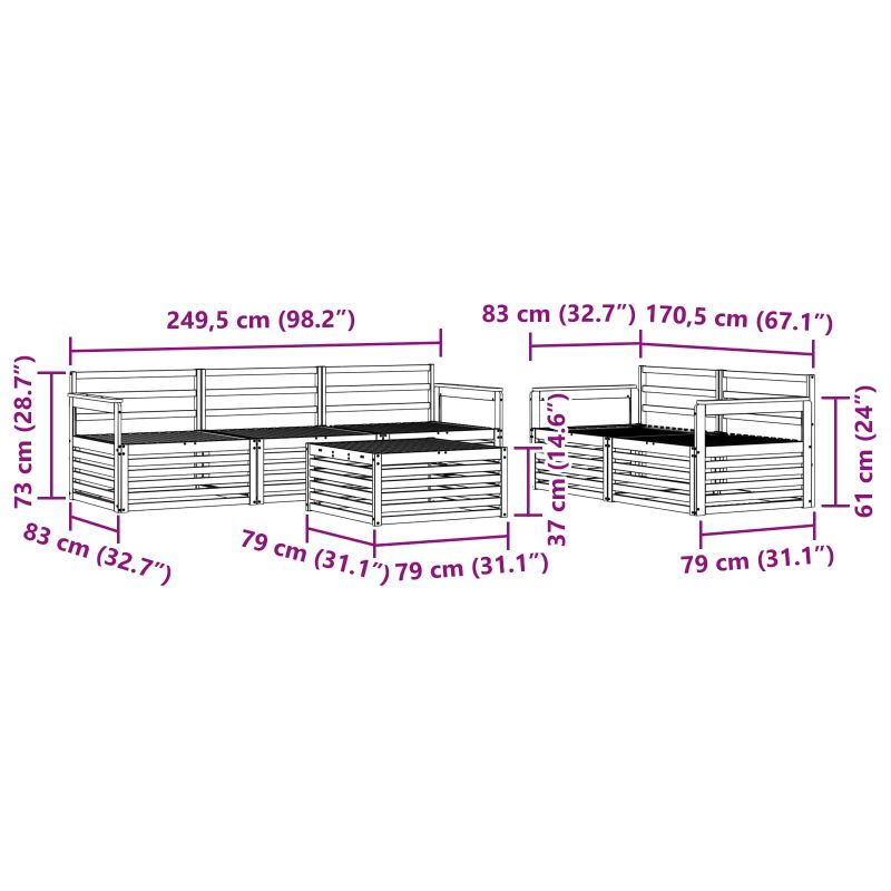 Този комплект мебели за открито свързва стил и функционалност, създавайки впечатляващ фокус в градината или на терасата. С модерния си дизайн, изчистени линии и минимални детайли, добавя елегантност и удобство за открито. Изработен от масивно акациево дърво, този комплект е много здрав и ще изглежда добре дълго време – идеален избор за тези, които търсят практични решения и изтънчен стил. Издръжливо акациево дърво: Комплектът е направен от истинско акациево дърво и е известен с дълговечността и устойчивостта си на атмосферни условия. Солидната конструкция осигурява надеждност и стабилност, докато топлият естествен цвят добавя красота на всяко градинско или терасово пространство. Устойчив на времето: Лакираната повърхност осигурява допълнителен слой защита срещу слънце и дъжд. Полираното покритие запазва добрия вид и функционалността, като осигурява дълготрайност за градината, терасата или задния двор. Компоненти и дизайн: Всеки елемент, от подлакътниците до облегалките, е проектиран с внимание към стила и функционалността. Поддръжката осигурява допълнителен комфорт и съвместният дизайн гарантира визуална хармония за различни открити събития. Комфорт и многофункционалност: Модулният дизайн позволява лесна промяна на конфигурацията, за да отговаря на различни нужди. Идеален е за отдих, социални събития или четене на тиха книга, този комплект лесно се адаптира към всяка открита среда и увеличава комфорта. Лесна поддръжка: За да поддържате мебелите в добро състояние, просто ги изтрийте с влажна кърпа и избягвайте агресивни почистващи средства. Редовната грижа помага за запазването на добрия им вид и удължава живота на мебелите.