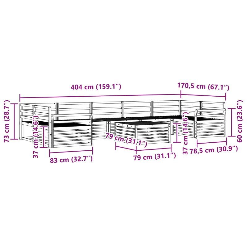 Този комплект мебели за открито е съчетание от стил и функционалност, което оформя централна част за всяка градина или тераса. Модерният дизайн с чисти линии добавя елегантност и осигурява практичност за социални събирания. Издръжлива масивна акациева дървесина: Здравата му структура осигурява дълготрайност и устойчивост на външни условия, а топлата му визия придава charme на всяка градина или тераса. Устойчивост на атмосферни влияния: Лакираната повърхност добавя защита от слънце и дъжд, запазвайки както вида, така и функциите на комплекта за дълго.