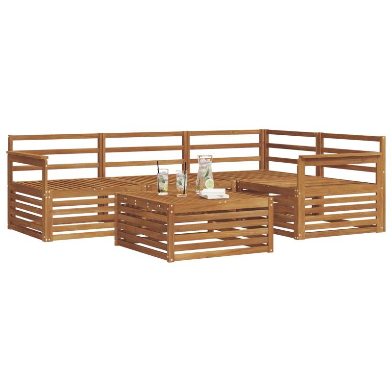 Този комплект мебели за открито съчетава стил и полезност, създавайки наистина впечатляващ акцент за всяка градина или тераса. Модерният му дизайн с чисти линии и минималистични детайли добавя елегантност, като същевременно поддържа удобството за релаксация и социални събирания. Направен е изцяло от масивна акациева дървесина, което му осигурява дълготрайност и визуална привлекателност - перфектен избор за тези, които искат практичност и стил в градинските мебели. Здраво акациево дърво: Изработен от масивна акациева дървесина, този комплект е много издръжлив и устойчив на атмосферни условия. Структурата осигурява стабилност и дълготрайност, а топлият естествен цвят допълва всяка градина или тераса. Устойчивост на времето: Повърхността му е лакирана, за да се защити от слънцето, дъжда и други външни условия. Полираното покритие помага да запази добрия си вид и функционалността, осигурявайки дългогодишна издръжливост. Дизайн и компоненти: Всеки елемент, от подлакътниците до гръбчетата, е проектиран с внимание към стилa и удобно сядане. Стимулиращите функции добавят комфорт, а унифицираният дизайн гарантира визуалната му равновесие за различни поводи навън. Комфорт и адаптивност: Модулният дизайн позволява различни конфигурации, за да предпочиташ да му проправиш път за различни пространства. Идеален е за почивка и приятни разговори или за момент на уют с книга, адаптира се лесно и максимизира комфорта. Лесен за поддръжка: За да запазиш мебелите в добро състояние, просто ги почиствай с влажна кърпа и избягвай агресивни почистващи средства. Редовната грижа помага да запазиш свежестта им и да удължиш живота на мебелите.