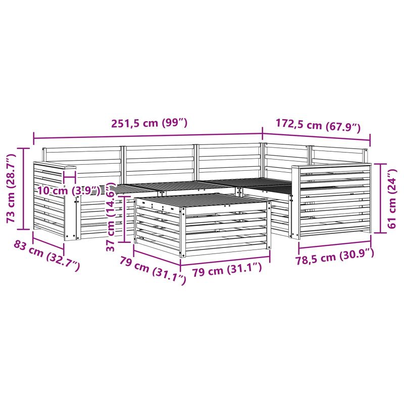 Този комплект мебели за открито съчетава стил и полезност, създавайки наистина впечатляващ акцент за всяка градина или тераса. Модерният му дизайн с чисти линии и минималистични детайли добавя елегантност, като същевременно поддържа удобството за релаксация и социални събирания. Направен е изцяло от масивна акациева дървесина, което му осигурява дълготрайност и визуална привлекателност - перфектен избор за тези, които искат практичност и стил в градинските мебели. Здраво акациево дърво: Изработен от масивна акациева дървесина, този комплект е много издръжлив и устойчив на атмосферни условия. Структурата осигурява стабилност и дълготрайност, а топлият естествен цвят допълва всяка градина или тераса. Устойчивост на времето: Повърхността му е лакирана, за да се защити от слънцето, дъжда и други външни условия. Полираното покритие помага да запази добрия си вид и функционалността, осигурявайки дългогодишна издръжливост. Дизайн и компоненти: Всеки елемент, от подлакътниците до гръбчетата, е проектиран с внимание към стилa и удобно сядане. Стимулиращите функции добавят комфорт, а унифицираният дизайн гарантира визуалната му равновесие за различни поводи навън. Комфорт и адаптивност: Модулният дизайн позволява различни конфигурации, за да предпочиташ да му проправиш път за различни пространства. Идеален е за почивка и приятни разговори или за момент на уют с книга, адаптира се лесно и максимизира комфорта. Лесен за поддръжка: За да запазиш мебелите в добро състояние, просто ги почиствай с влажна кърпа и избягвай агресивни почистващи средства. Редовната грижа помага да запазиш свежестта им и да удължиш живота на мебелите.