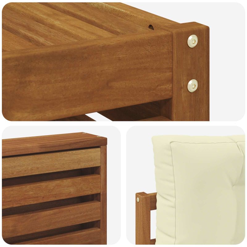 Този комплект мебели за открито съчетава стил и полезност, създавайки наистина впечатляващ акцент за всяка градина или тераса. Модерният му дизайн с чисти линии и минималистични детайли добавя елегантност, като същевременно поддържа удобството за релаксация и социални събирания. Направен е изцяло от масивна акациева дървесина, което му осигурява дълготрайност и визуална привлекателност - перфектен избор за тези, които искат практичност и стил в градинските мебели. Здраво акациево дърво: Изработен от масивна акациева дървесина, този комплект е много издръжлив и устойчив на атмосферни условия. Структурата осигурява стабилност и дълготрайност, а топлият естествен цвят допълва всяка градина или тераса. Устойчивост на времето: Повърхността му е лакирана, за да се защити от слънцето, дъжда и други външни условия. Полираното покритие помага да запази добрия си вид и функционалността, осигурявайки дългогодишна издръжливост. Дизайн и компоненти: Всеки елемент, от подлакътниците до гръбчетата, е проектиран с внимание към стилa и удобно сядане. Стимулиращите функции добавят комфорт, а унифицираният дизайн гарантира визуалната му равновесие за различни поводи навън. Комфорт и адаптивност: Модулният дизайн позволява различни конфигурации, за да предпочиташ да му проправиш път за различни пространства. Идеален е за почивка и приятни разговори или за момент на уют с книга, адаптира се лесно и максимизира комфорта. Лесен за поддръжка: За да запазиш мебелите в добро състояние, просто ги почиствай с влажна кърпа и избягвай агресивни почистващи средства. Редовната грижа помага да запазиш свежестта им и да удължиш живота на мебелите.