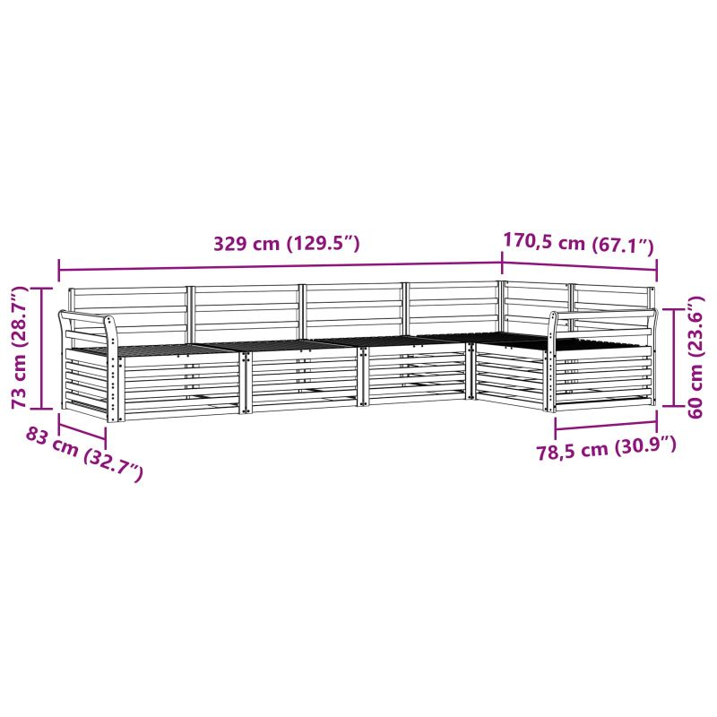 Комплектът за външни мебели съчетава стил и удобство, създавайки невероятна централна част за всяка градина или тераса. С модерния си дизайн, чисти линии и минимално количество детайли, добавя елегантност и е чудесен за социални събирания на открито. Направен е от масивна акациева дървесина, което го прави траен и привлекателен, идеален за хора, които искат практичност и стилно изживяване в градината. Издръжливо масивно акациево дърво: Изработено от тънки акациеви дъски, това е мебели за открито, известен с дълготрайността си. Здравината на конструкцията предоставя стабилност и надеждност, а топлият цвят добавя чар към всяка градина или тераса. Устойчив на времето: Този комплект е обработен с лак, който предоставя допълнителна защита от слънце и дъжд. Полираният завършек поддържа добрия външен вид и осигурява дълготрайна устойчивост. Превъзходен дизайн: Всеки детайл, от подлакътниците до облегалките, е направен внимателно с мисъл за стил и комфорт. Осигурява удобно ползване, а дизайна е визуално приятен за всяко събитие на открито. Комфорт и многофункционалност: С модулния си дизайн, комплектът позволява бърза смяна на конфигурацията. Идеален е за релакс, социални събирания или тихо четене, като лесно се приспособява към всяка открита среда. Лесна поддръжка: Поддържайте мебелите в добро състояние, като ги почиствате с влажна кърпа. Избягвайте агресивни препарати. Редовната поддръжка помага да запазите естетиката и дълготрайността на комплектът.