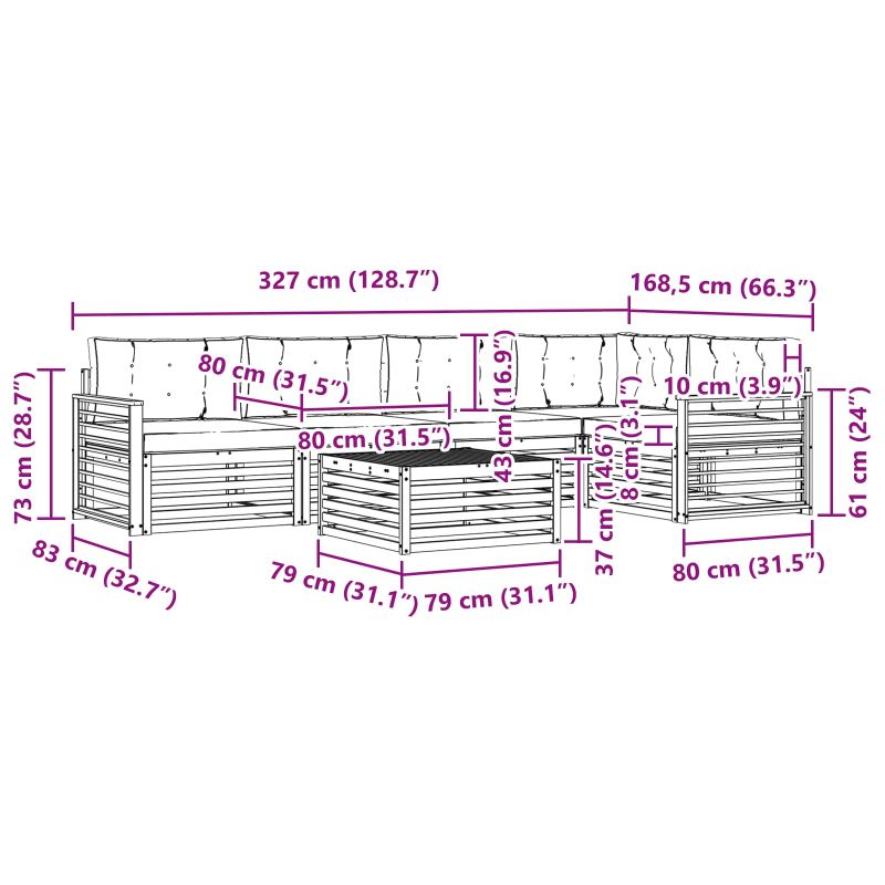• 6 x Задна възглавница: 80 x 43 x 10 см (ДхШхВ)