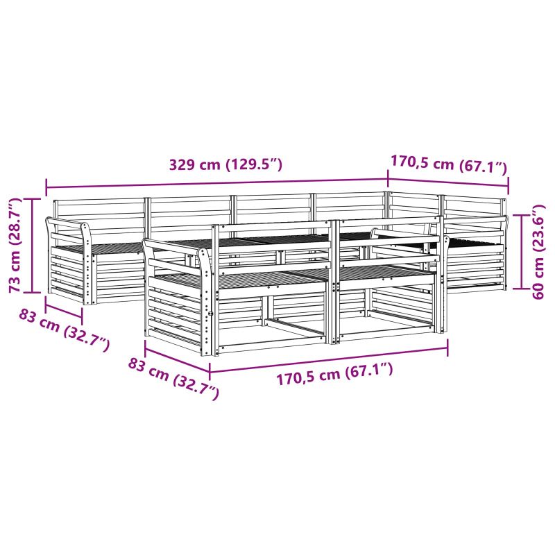 Комплектът мебели за открито е супер стилен и функционален, създавайки впечатляващ акцент за всяка градина или тераса. Неговият съвременен дизайн с чисти линии и минимални детайли добавя елегантност и е страхотно и за релаксация, и за социални събирания. Направен е от масивна акациева дървесина, което гарантира дълготрайност и привлекателен вид, което го прави идеален избор за всеки, който търси практичност и стил в мебелите за открито. Издръжлива рамка от масивно акациево дърво: Този комплект е направен от масивно акациево дърво и е много здрав, устойчив на всякакви метеорологични условия. Здравата структура осигурява надеждност и дълготрайност, а естественият тон допълва всякакви градини или тераси. Дизайн, устойчив на климатични условия: Този комплект има лакирана повърхност, която добавя защита срещу слънце, лек дъжд и всякакви климатични условия. Лъскавото покритие помага да запазиш външния вид и функционалността, осигурявайки дълготрайна употреба в градината, на терасата или в двора. Компоненти и дизайн: Всеки детайл, от подлакътниците до облегалките, е проектиран с стил и функция на ум. Опорните функции предлагат допълнителен комфорт, а свързаният дизайн прави комплекта визуално балансиран и подходящ за различни поводи на открито. Комфорт и гъвкавост: Модулният дизайн дава възможност за различни конфигурации, така че да пасва на различни пространства и нужди. Идеален е за релаксация, социални събирания или за спокойни моменти с книга; този комплект лесно се адаптира към всяка открита среда, максимизирайки комфорта и полезността. Лесна поддръжка и грижа: За да поддържаш мебелите в добро състояние, просто изтривай повърхностите с влажна кърпа и избягвай остри или абразивни средства за почистване. Редовната поддръжка ще запази външния вид и ще удължи живота на мебелите.