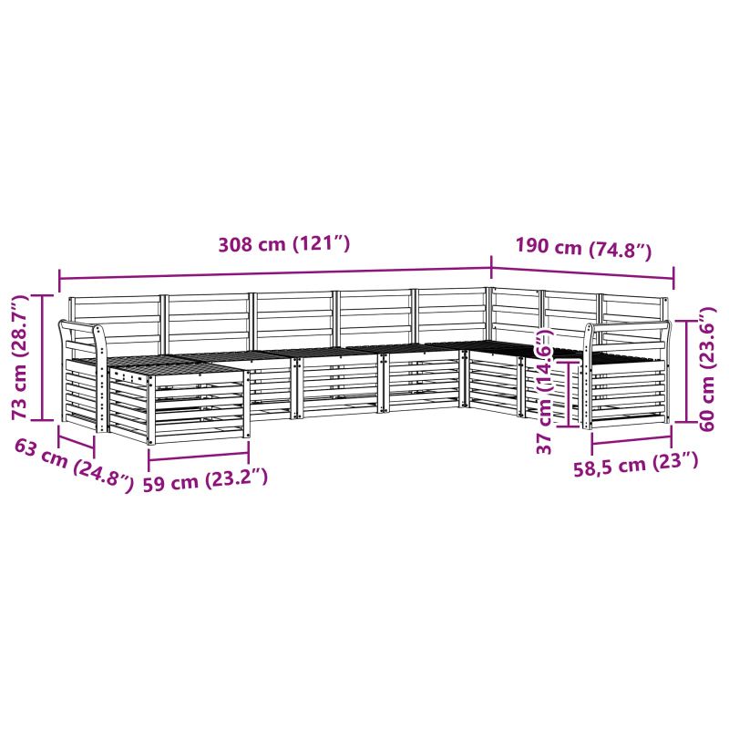 Този комплект за открито обединява стил и практичност, създавайки невероятен акцент за всяка градина или тераса. Съвременният дизайн с минималистични линии придава елегантност и улеснява релаксацията и социалните събирания на открито. Направен е от масивна акациева дървесина, осигуряваща здравина и дълготрайна привлекателност, идеален за тези, които търсят практични и стилни решения за открито. Издръжлив масивен акациев материал: Този комплект мебели за открито е направен от масивна акациева дървесина, известна със своята здравина и устойчивост на атмосферни влияния. Здравата конструкция осигурява надеждност и дълготрайност, а топлият естествен цвят добавя чар към всяка градина или тераса. Водоустойчив дизайн: Комплектът разполага с лакирана повърхност, която осигурява допълнителна защита срещу слънце, дъжд и неблагоприятни условия. Полираното покритие запазва както външния вид, така и функционалността, осигурявайки дълготрайност за вашата градина, патио или двор. Компоненти и дизайн: Всеки елемент, от подлакътниците до облегалките, е проектиран с внимание към стила и функцията. Поддържащите характеристики добавят комфорт, а координираният дизайн осигурява визуално единство, подходящо за различни поводи на открито. Комфорт и многофункционалност: Модулният дизайн предлага гъвкави конфигурации, които да отговарят на различни нужди. Идеален е за релаксация, социални събирания или спокойно четене, комплектът се адаптира без усилие към всяка открита среда, максимизирайки комфорта. Лесна поддръжка: За да запазите мебелировката в добро състояние, просто я почиствайте с влажна кърпа и избягвайте остри или абразивни средства. Редовната грижа помага да се запази добрият вид и дълготрайността на мебелировката.