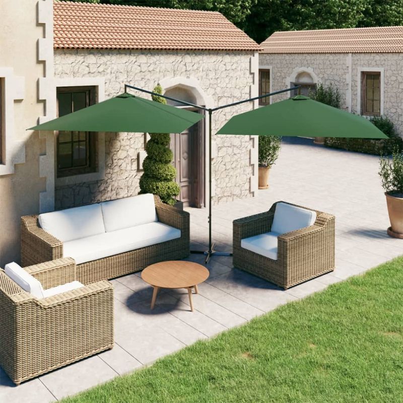 Двоен градински чадър със стоманен прът, зелен, 600x300 см