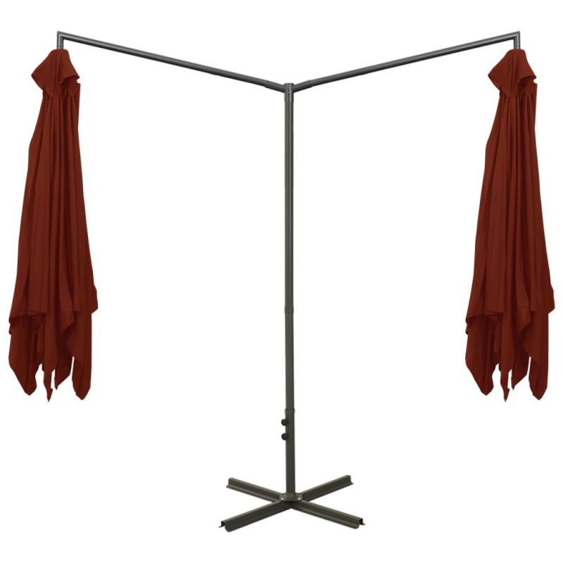 Двоен градински чадър със стоманен прът, теракота, 600x300 см