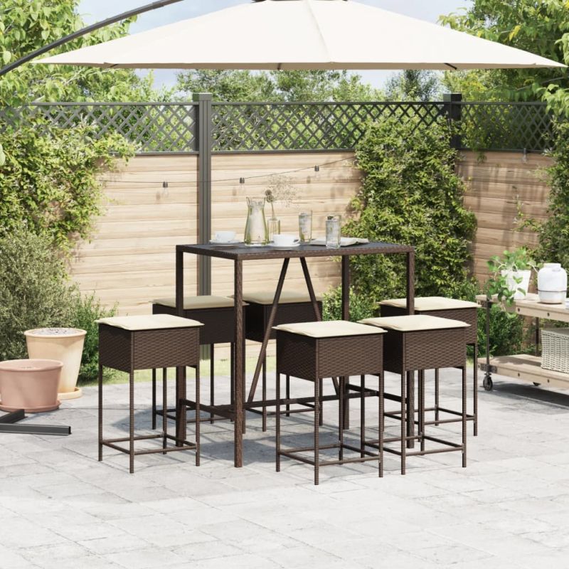 Градински бар комплект с възглавници 7 части кафяв полиратан
