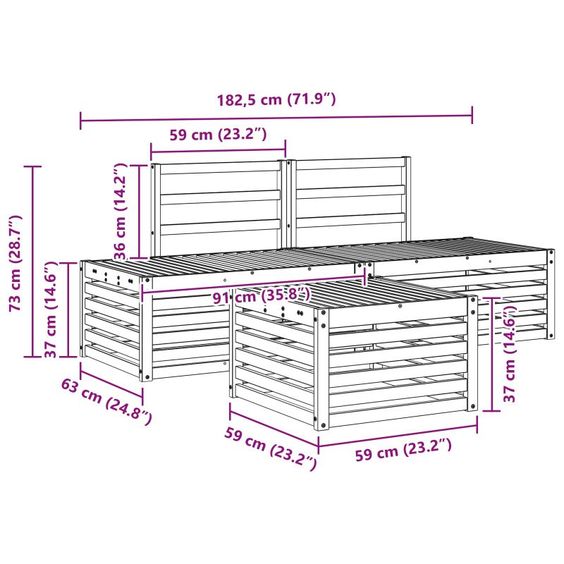 • 2 x Диван: 91 x 63 x 73 см (ДxШxВ)