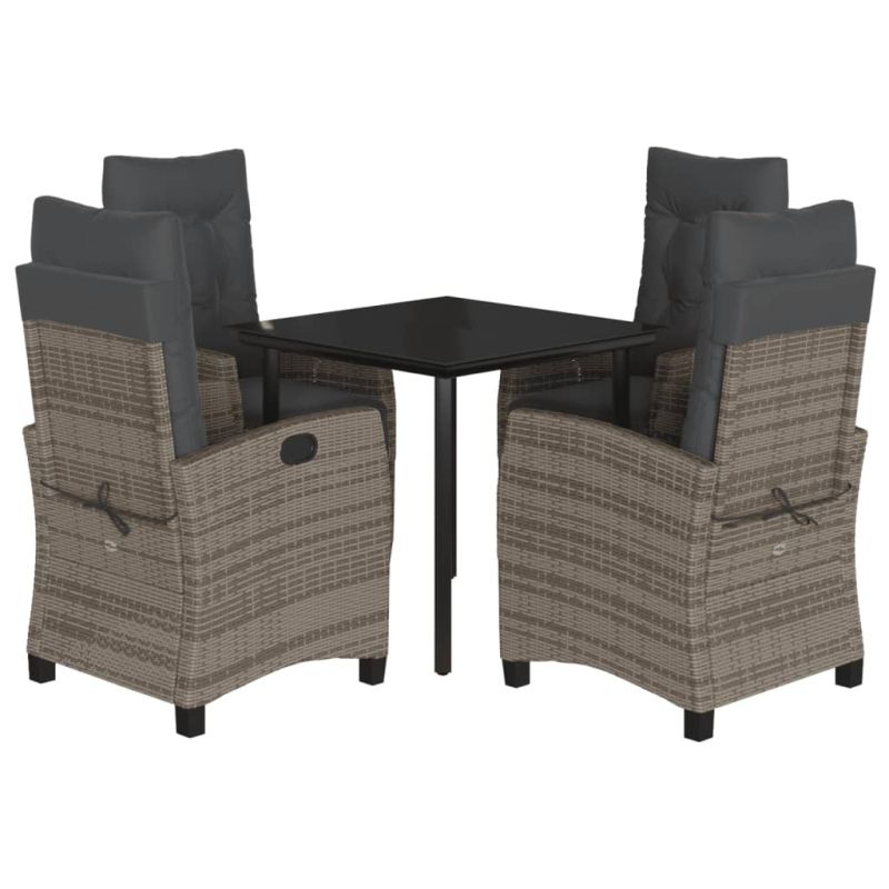 Градински трапезен комплект 5 части с възглавници сив полиратан