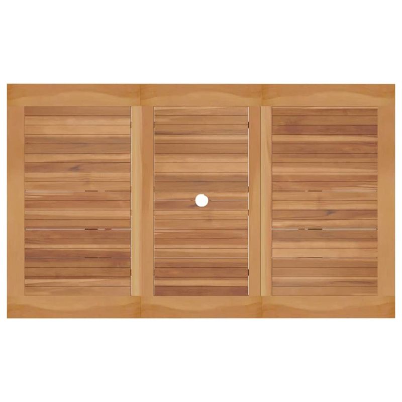 Този шикозен комплект за хранене на открито съчетава модерен стил с естествената красавица на дървото, идеален за елегантни събирания навън. Перфектен е за градини и тераси, а уникалния му дизайн и функционалност ще те изненадат. Направен с елегантни линии и привлекателни текстури, той ще преобрази пространството ти, подходящ за уютни вечери или големи тържества! Със здрава конструкция, този комплект е идеален за дългосрочно наслаждение в твоята градина. Висококачествена акациева дървесина: Комплектът е направен от първокласно акациево дърво с естествена устойчивост и красив вид. Този материал е идеален за откритите пространства и е специален, тъй като запазва своя чар с времето. Функционални компоненти: С удобни подлакътници и здрава облегалка, всеки стол е проектиран да увеличава комфорта. Масата е с достатъчно място за твоите нужди, за да направи всяко хранене специално. Съвременен дизайн: С елегантния си стил, комплектът е в крак с последните тенденции в градинските мебели, подходящ както за модерни, така и за класически обстановки. Мултифункционален комплект: Подходящ е за ранни кафе паузи или семейни тържества, комплектът лесно се приспособява към различни открити места, предлагайки комфорт и стил за всяко време. Лесна поддръжка: Поддържането е лесно – просто го избърсвай с влажна кърпа. Използвай покривало, когато не го ползваш дълго време, за да запазиш качеството му за години напред.