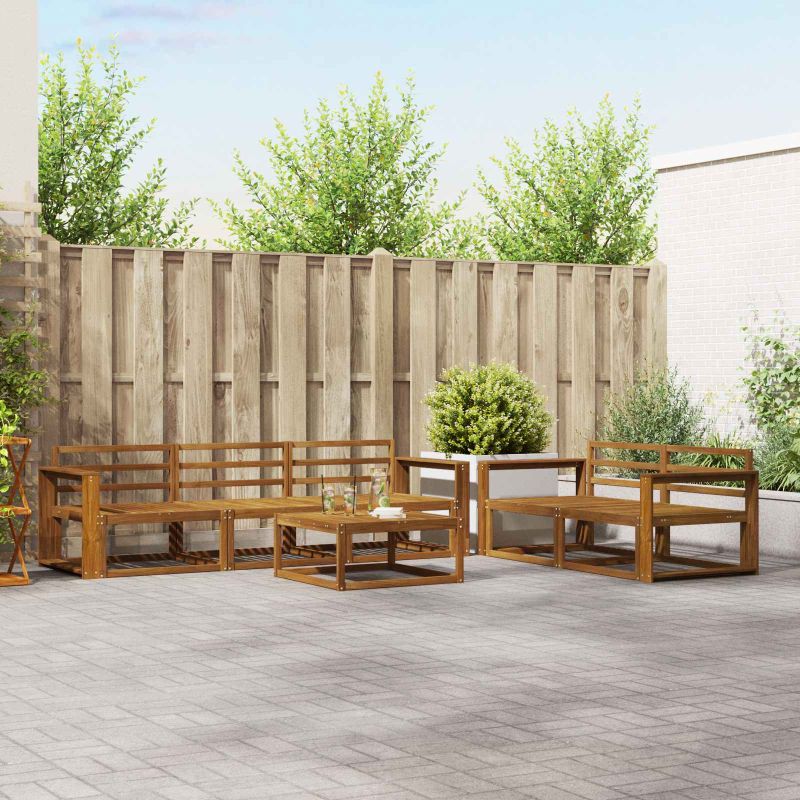 Този модерен комплект открит ъглов диван е точно това, от което се нуждаете, за да направите вашата градина, патио или край басейн централно място. Със своя стилен дизайн и удачно съчетание на удоволствие и функция, кафявите му тонове и скрития гръб придават лукс на откритите пространства, създавайки перфектна зона за сядане за всякакви събития или тихи моменти. Независимо дали е под чадър или на слънце, този комплект ще преобрази всяка среда със своето безвремие, канейки всеки да се отпусне и да се наслади на удоволствието от откритото. Масивна акациева дървесина: Направен от първокласна масивна акациева дървесина, този комплект дивани излъчва естествена красота и здравина. С доказаната си устойчивост и красиви зърна, акациевата дървесина е идеална за открито, тъй като е устойчива на атмосферни условия и ежедневна употреба. Природната лъскавина на дървесината добавя елегантност и не изисква много поддръжка, което я прави сладък избор за всеки стилен дом. Слатен гръб: С елегантен слатен гръб, този комплект дивани комбинира красота и удобство. Този дизайн позволява циркулация на въздуха и придава по-освежаващо усещане на вашето пространство. Поддържащата облегалка предлага комфорт, а красивия вид създава уютна атмосфера на открито, перфектна за развлечения или релакс. Фиксирана слатена рамка: Здравата и фиксирана слатена рамка осигурява стабилност и надеждност, които ще ви служат години напред. Този дизайн е перфектен за открито, където е нужна здрава опора. Конструкцията на рамката допълва стила на дивана, създавайки единно визуално излъчване, което акцентира на здравината и съвременния вид. Устойчив на времето: Проектиран да издържа на теста на времето, този комплект е направен да понася различни метеорологични условия. От слънчеви следобеди около басейна до ветровити вечери в градината, материалите и дизайнът осигуряват допълнителна защита, така че диванът да остане удобен и привлекателен през целия сезон. Модулна конфигурация: Модулният дизайн на комплета ви позволява да настроите подредбата по ваш вкус, в зависимост от настроението или повода. Можете лесно да създадете интимна обстановка или да разширите местата за сядане. Тази гъвкавост осигурява комфорт и позволява адаптация към нуждите на вашия начин на живот, добавяйки стил и функционалност.
