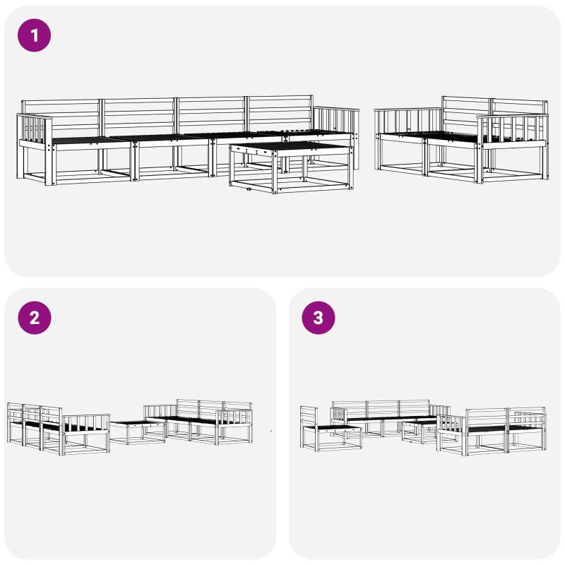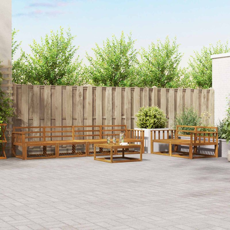 Този комплект за външно секционно канапе преобразява всяка градина или тераса в приятно място за релаксация. С модерен стил, той лесно се вписва в откритите пространства. Приветливият решетъчен дизайн позволява на въздуха да преминава, създавайки уютна атмосфера за разговори под слънцето или вечеринки под звездите. Масивна акациева дървесина: Комплектът е изграден от масивна акациева дървесина, устойчива на времето и с дълготрайна красота. Топлите оттенъци придават стил и надеждност, които отлично украсяват всяко открито пространство. Структура и дизайн: С красиво проектиран решетъчен гръб и здрава рамка, комплектът съчетава елегантност и здравина. Ръцете, облегалките и седалките са от масивна акациева дървесина, предлагайки устойчив вид и комфорт. Модулна функционалност: Лесно променяйте подредбите благодарение на иновативния модулен дизайн. Всяка част е с поддържаща облегалка и решетъчен дизайн, добавящи комфорт и стил. Препоръчва се за външен монтаж: Идеален за градини, тераси и около басейни, комплектът предлага спокойствие и дълговечност, правейки го отличен избор за всеки, който иска да се наслади на времето навън. Поддръжка: За да поддържате комплекта в отлично състояние, избягвайте пряка слънчева светлина и използвайте покривало, когато не е в употреба. Избърсвайте редовно с влажна кърпа, за да запазите вида му и да осигурите дълъг живот.