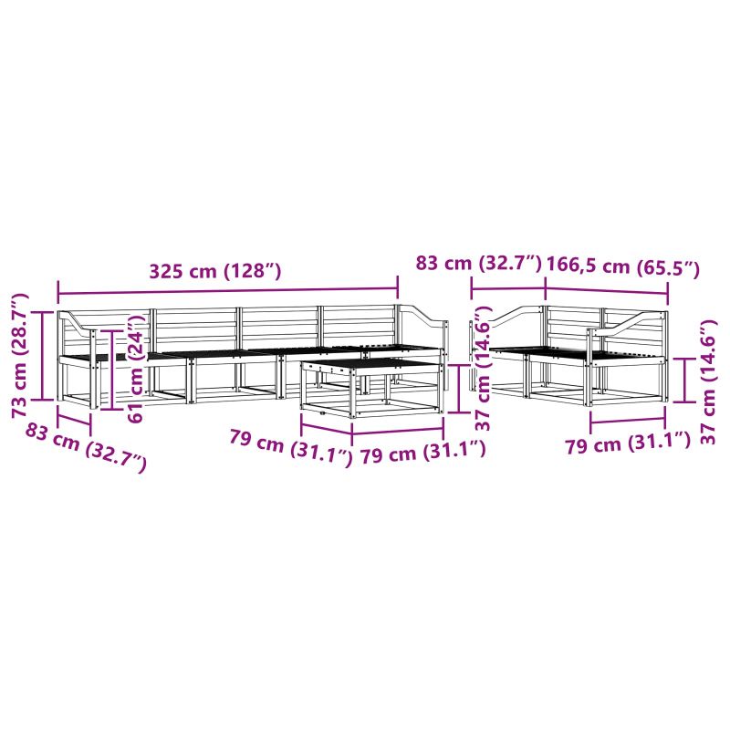 Този комплект за външно секционно канапе преобразява всяка градина или тераса в приятно място за релаксация. С модерен стил, той лесно се вписва в откритите пространства. Приветливият решетъчен дизайн позволява на въздуха да преминава, създавайки уютна атмосфера за разговори под слънцето или вечеринки под звездите. Масивна акациева дървесина: Комплектът е изграден от масивна акациева дървесина, устойчива на времето и с дълготрайна красота. Топлите оттенъци придават стил и надеждност, които отлично украсяват всяко открито пространство. Структура и дизайн: С красиво проектиран решетъчен гръб и здрава рамка, комплектът съчетава елегантност и здравина. Ръцете, облегалките и седалките са от масивна акациева дървесина, предлагайки устойчив вид и комфорт. Модулна функционалност: Лесно променяйте подредбите благодарение на иновативния модулен дизайн. Всяка част е с поддържаща облегалка и решетъчен дизайн, добавящи комфорт и стил. Препоръчва се за външен монтаж: Идеален за градини, тераси и около басейни, комплектът предлага спокойствие и дълговечност, правейки го отличен избор за всеки, който иска да се наслади на времето навън. Поддръжка: За да поддържате комплекта в отлично състояние, избягвайте пряка слънчева светлина и използвайте покривало, когато не е в употреба. Избърсвайте редовно с влажна кърпа, за да запазите вида му и да осигурите дълъг живот.