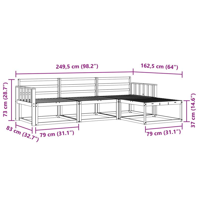 • 3 x Среден диван: 79 x 83 x 73 см (Д x Ш x В)