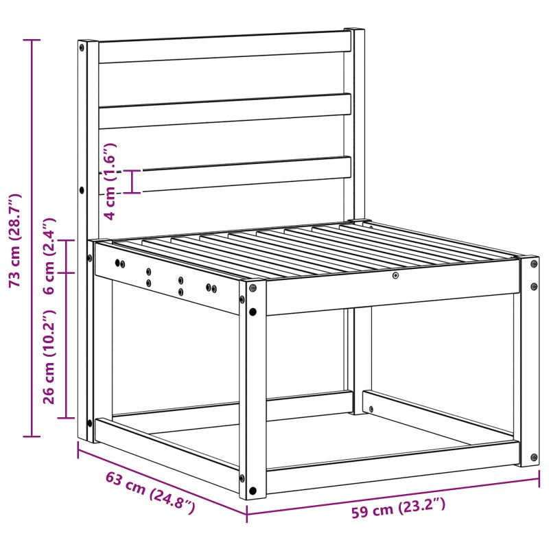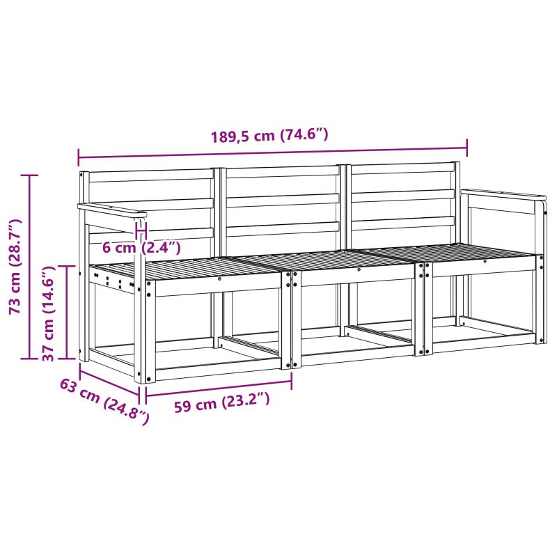 • 3 x Среден диван: 59 x 63 x 73 см (Д x Ш x В)