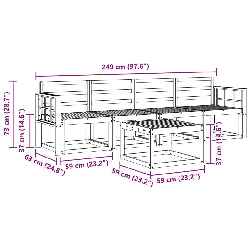 • 4 x Среден диван: 59 x 63 x 73 см (Д x Ш x В)