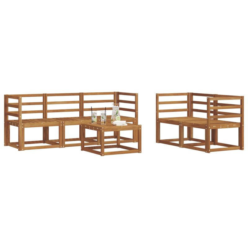 Комплектът за външни мебели съчетава стил и удобство, създавайки впечатляващо място за всяка градина или тераса. Модерният му дизайн с ясни линии и минималистични детайли внася елегантност и поддържа комфорта и социалните събирания на открито. Изработен изцяло от масивна акациева дървесина, комплектът осигурява издръжливост и дълготрайна привлекателност, правейки го прекрасен избор за тези, които искат функционалност и модерен вид. Здрава масивна акациева дървесина: Този комплект мебели е направен от масивна акациева дървесина, известна с устойчивостта си на външни условия. Здравата конструкция осигурява дълготрайна стабилност, а топлият цветен нюанс подхожда на всяка градина или тераса. Устойчив на времето дизайн: С лакирана повърхност, комплектът предлага допълнителна защита от слънце и лек дъжд. Полираното покритие помага да се запази вида му и осигурява дълготрайна употреба във вашата градина или тераса. Характеристики и дизайн: Всяка част е проектирана с внимание към стила и функциите. Структурните елементи предоставят комфорт, а свързаният дизайн гарантира визуално хармонично изглеждащ комплект, идеален за различни случаи на открито. Комфорт и гъвкавост: Модулният дизайн позволява различни конфигурации, подходящи за всякакви нужди. Перфектен за почивка, социални срещи или тихи моменти с книга, комплектът се адаптира лесно към всяка обстановка. Лесна поддръжка: За да запазите мебелите в отлично състояние, почиствайте с влажна кърпа и избягвайте агресивни препарати. Редовната грижа удължава живота на мебелите и запазва добрия вид.