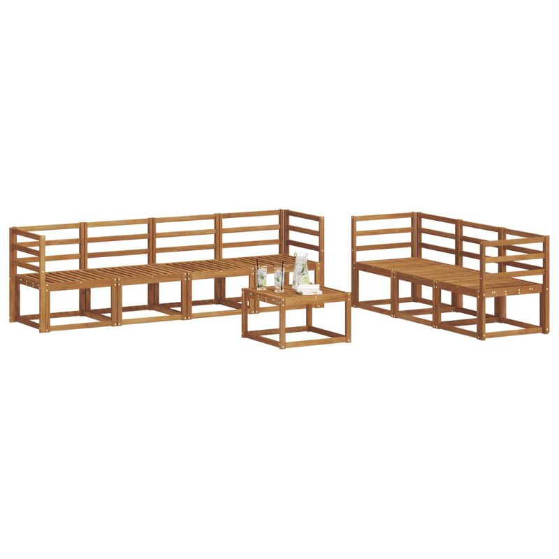 Този комплект за външни мебели обединява стил и практичност, създаваща уникален акцент за градината или терасата. Със своя модерен дизайн, чисти линии и минималистичен вид, той добавя елегантност и е идеален за социални събития. Направен е от масивна акациева дървесина, която гарантира здравина и дълготрайна привлекателност - перфектен за тези, които търсят стил и комфорт навън. Издръжлива масивна акациева дървесина: Тази мебел е изработена от масивна акациева дървесина, трайна и устойчива, идеална за всякакви външни условия. Конструкцията осигурява надеждност и стил, а топлият природен тон придава уют на всяка градина. Устойчив на климатични условия дизайн: С лакирана повърхност, този комплект предлага защита от слънце и дъжд. Полираният завършек запазва външния вид и функционалността, за дълготрайно удоволствие за вашия двор или тераса. Компоненти и дизайн: Всеки елемент, от подлакътниците до гръбчетата, е създаден с мисъл за стил и удобство. Осигурява допълнителен комфорт, а сбитият дизайн го прави визуално балансиран, подходящ за всякакви поводи на открито. Комфорт и гъвкавост: Модулният дизайн позволява различни конфигурации, подходящи за всяко пространство. Отличен за разпускане или социални събирания, комплектът лесно се адаптира, предоставяйки комфорт и удобство по всяко време. Лесна поддръжка: Поддържайте мебелите с влажна кърпа и избягвайте агресивни чистители. Редовната поддръжка запазва външния им вид и удължава живота на мебелите.